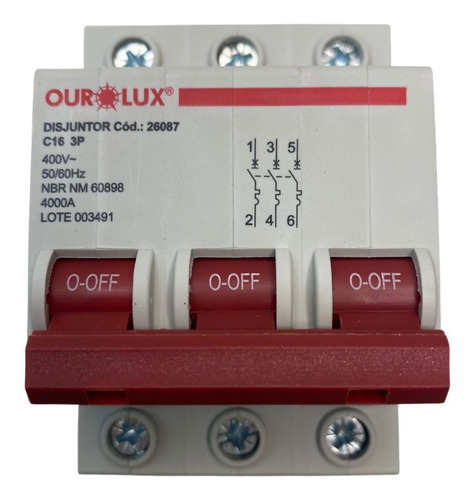 DISJUNTOR TRIPOLAR 16 AMPERES CURVA C OUROLUX